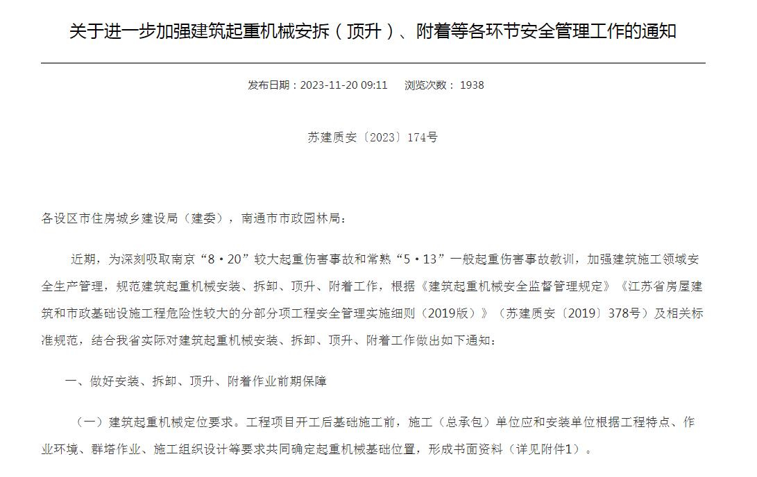关于进一步加强建筑起重机械安拆(顶升)、附着等各环节安全管理工作的通知