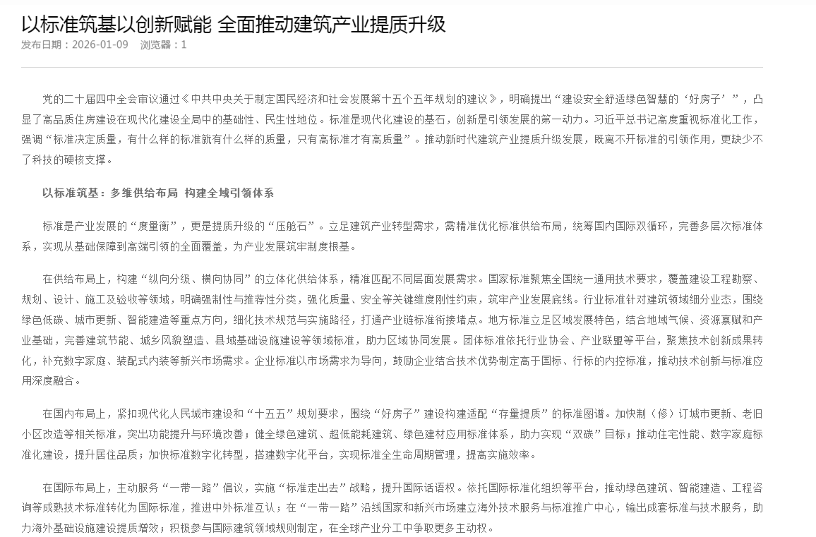 以标准筑基以创新赋能 全面推动建筑产业提质升级